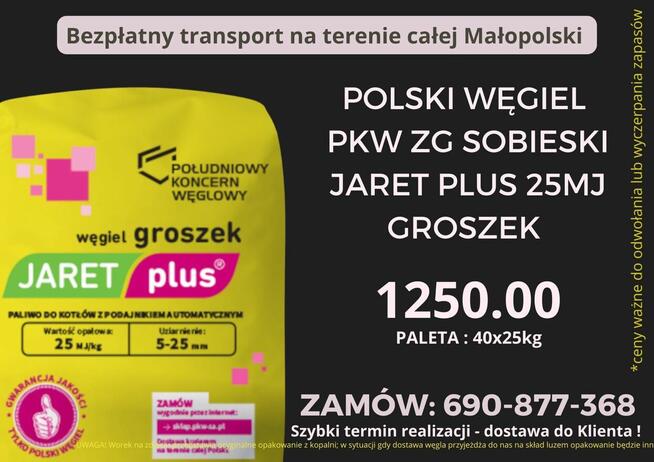 JARET PLUS - WĘGIEL GROSZEK - Polski Węgiel ! TRANSPORT GRATIS ! PKW ZG SOBIESKI : - WĘGIEL GROSZEK JARET PLUS 25 MJ ...